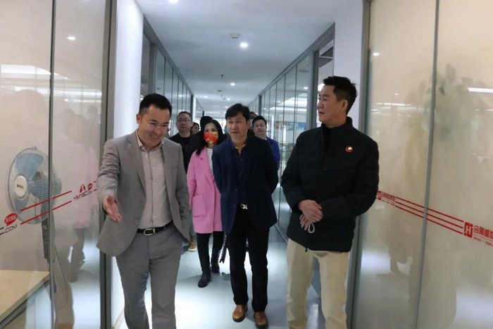 在豐華集團(tuán),走訪團(tuán)隊(duì)得到副主席盧沛芳的熱情接待,先后參觀公司各個功能區(qū)域。在公司部門負(fù)責(zé)人的介紹下,走訪團(tuán)隊(duì)詳細(xì)了解過去一年企業(yè)的發(fā)展形勢、地產(chǎn)項(xiàng)目、前景規(guī)劃等方面,悉心傾聽企業(yè)所思所急及對商會工作的意見建議。