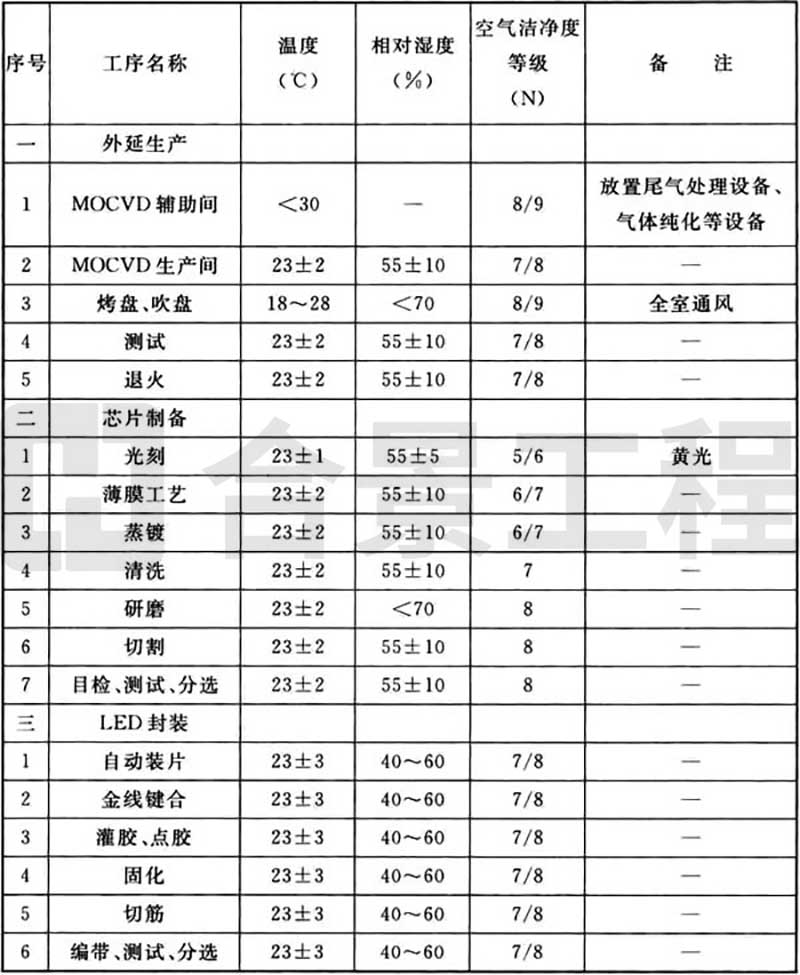 4.1.5 工藝設(shè)計應(yīng)明確工藝生產(chǎn)動力品質(zhì)要求。發(fā)光二極管生產(chǎn)工藝動力品質(zhì)要求可按照附錄B執(zhí)行。