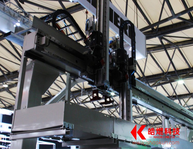桁架機(jī)器人由門(mén)架結(jié)構(gòu)、X軸組件、Y軸組件、Z軸組件以及自動(dòng)控制系統(tǒng)等構(gòu)成。其中,3個(gè)運(yùn)動(dòng)組件為桁架機(jī)器人的核心組件,根據(jù)系統(tǒng)控制能快速存取指定貨箱送到指定位置,實(shí)現(xiàn)密集存儲(chǔ)、快速揀選的功能。南京皓焜桁架機(jī)器人類(lèi)似于帶有抓取裝置的空中吊車(chē),沿著門(mén)架運(yùn)動(dòng)。Z軸工作端配置抓具,可自由抓取物品貨箱,搭載橫梁實(shí)現(xiàn)前后左右行走,在由支柱圍起的區(qū)域內(nèi)直接堆放存儲(chǔ)貨品,進(jìn)行立體垂直快速提取,實(shí)現(xiàn)貨物的自動(dòng)接收、入庫(kù)、儲(chǔ)存、揀選、分類(lèi)、集貨和發(fā)運(yùn)等一系列工作。